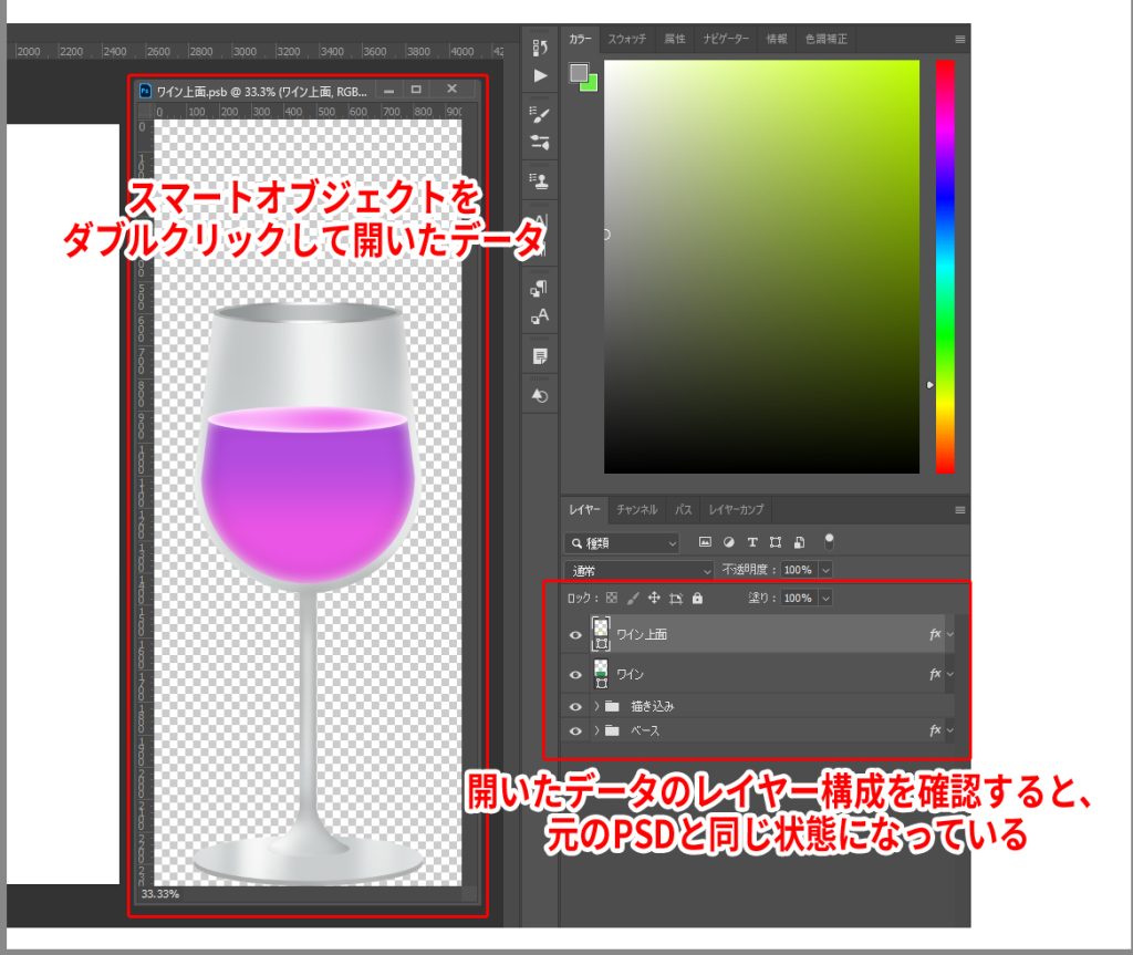 「ワイングラス」レイヤーをダブルクリックすると、スマートオブジェクトを開くことができます。
