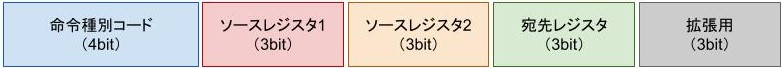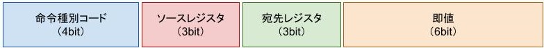 ピッタリ16bitになりました。命令種別コードが4bitですので、このCPUは最大2の4乗、16個の命令をサポートすることができます。