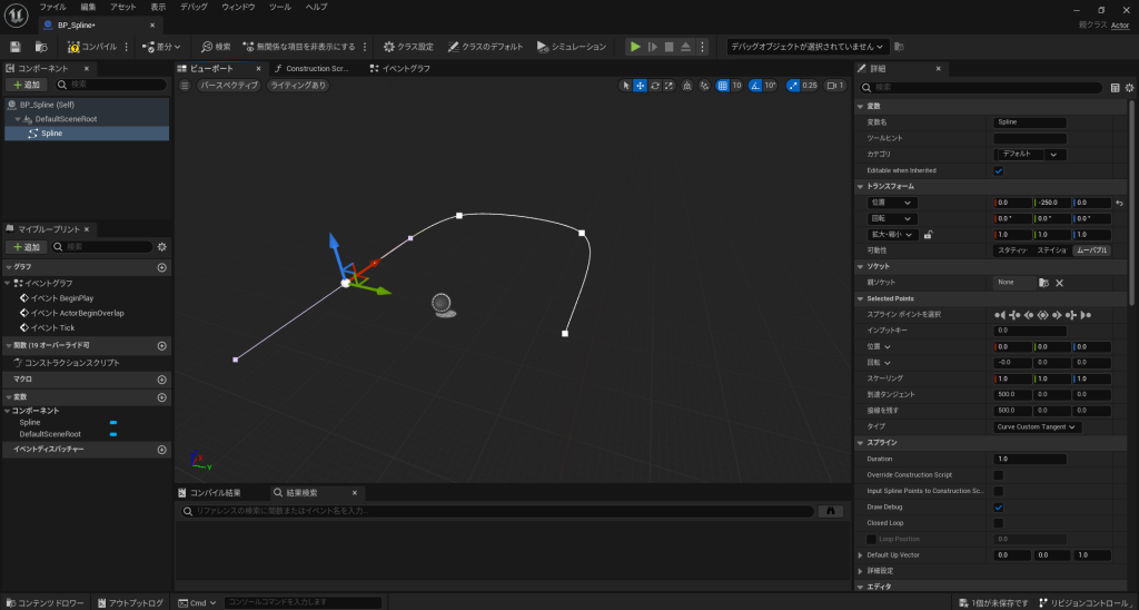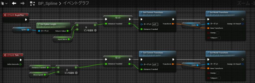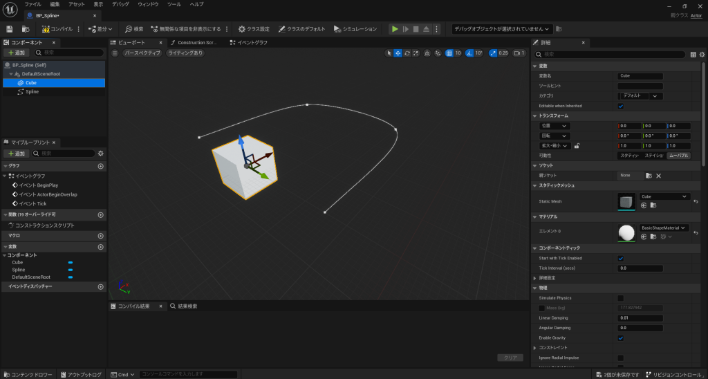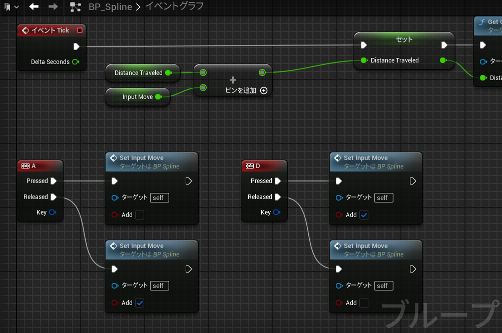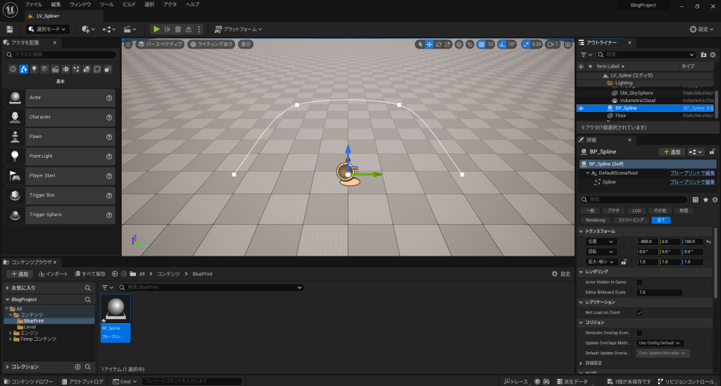 この記事ではスプライン上を動くコンポーネントと、そのコンポーネントをインプットキーで操作出来る処理を作ります。
