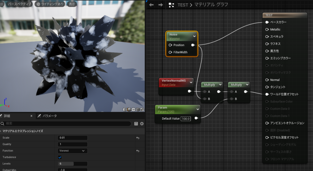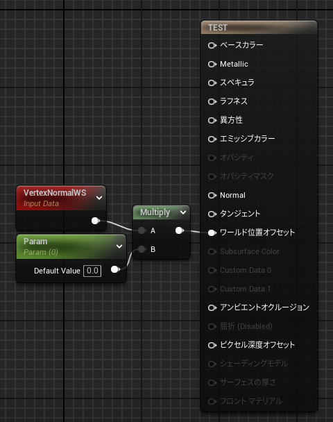 ワールド位置オフセットに接続し、1つのfloat値をMultiplyします。