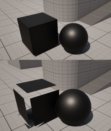 この時、注意したいのは「ノーマル(法線)の方向に」外に引き延ばされるので、対象の3Dモデルの法線がつながっていない場合(DCCツールでフラットシェーディングを設定した場合等)ポリゴンが分割して離れていってしまいます。