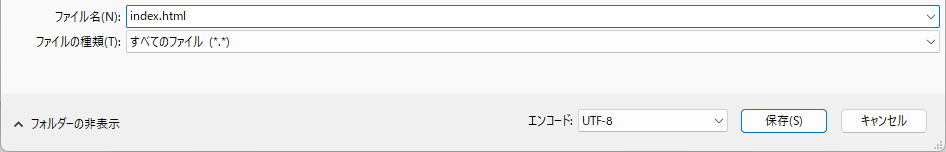 作成したテキストファイルを開き、「名前を付けて保存」から「全てのファイル」を選び、「index.html」にしましょう。