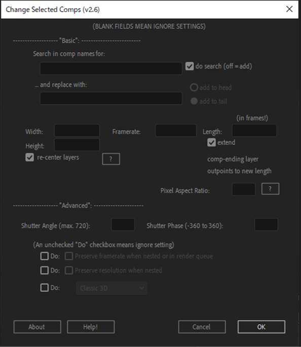 選択した複数のコンポジションの設定をまとめて変更するスクリプトです。