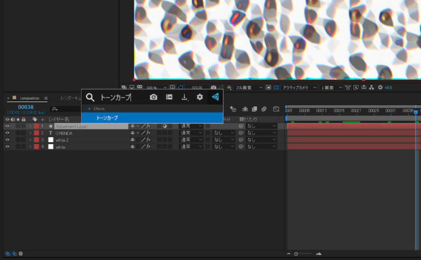 海外製のプラグインのため、日本語化されたAEや日本語入力とは相性が悪いところがあります。日本語名になったエフェクトの検索自体はできるのですが、検索窓内で入力・変換する際に文字が重複してしまう場合があるのです。