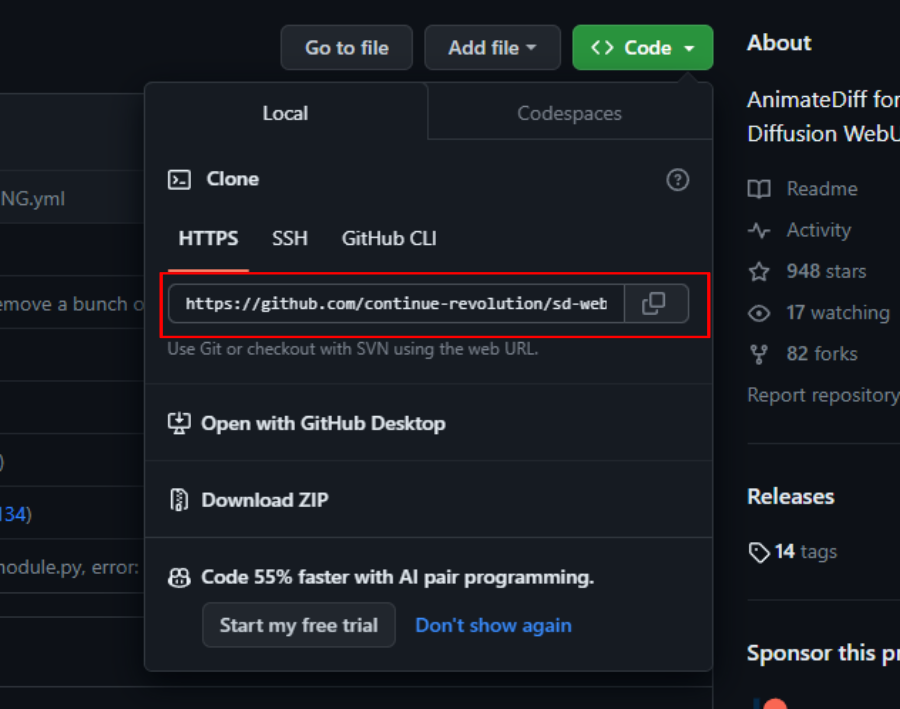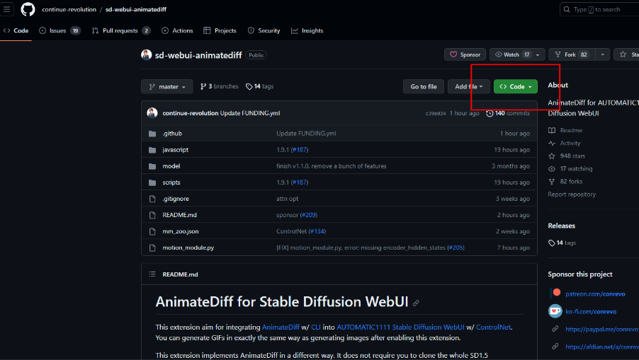 AnimateDiffのリポジトリは下記のgithubというサイトで公開されています。