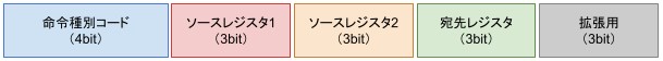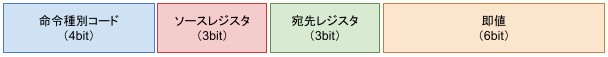 例えばレジスタ0とレジスタ1の値を加算してレジスタ2に格納するadd命令は、